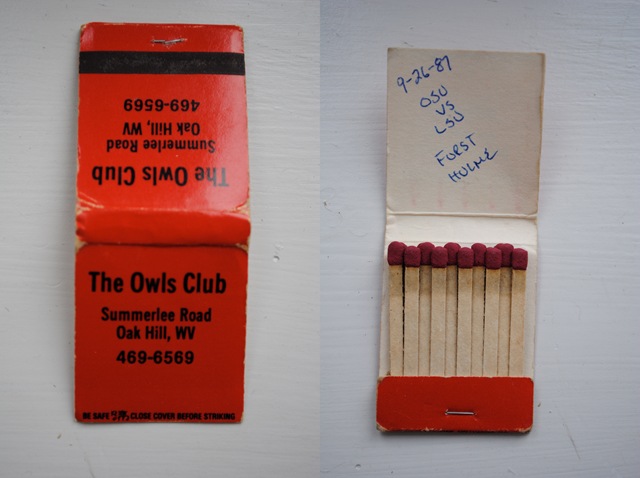 The day before my first rafting trip down the Upper Gauley River, we were determined to find a TV to watch the Buckeyes. We stumbled upon The Owls Club, which had no windows and a peep-hole on the front door. We were lucky to come out alive.